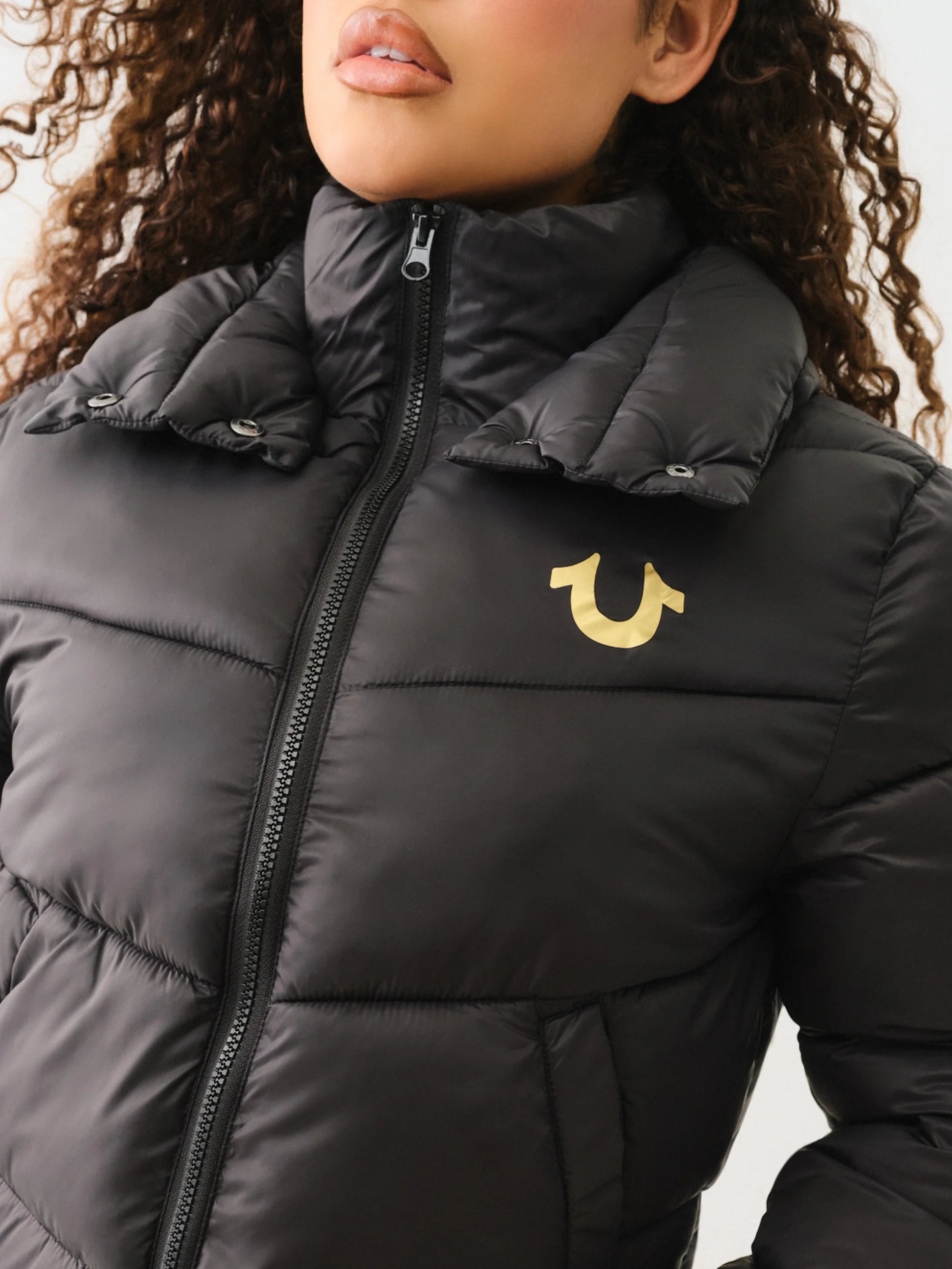 Stay warm and stylish with the True Religion Double Collar Puffer Jacket in Jet Black. Designed for ultimate comfort, its double collar offers extra protection against chilly winds while the sleek black finish ensures a versatile look for any occasion. Lightweight yet insulating, this jacket is perfect for navigating colder days without sacrificing fashion. Elevate your winter wardrobe with a piece that combines functionality and modern design effortlessly.
